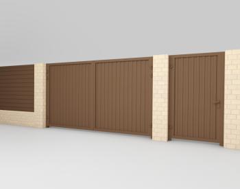 Для распашных ворот, помимо сэндвич-панелей, есть возможность изготовить заполнение из любых материалов: металлического штакетника, сетки, деревянных досок и других.